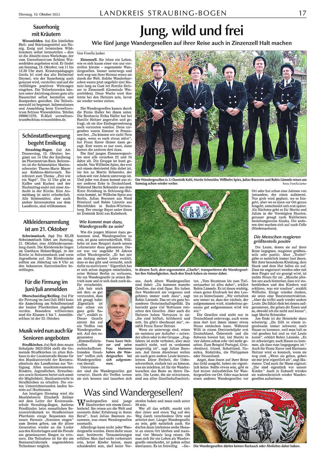 Gelebte Tradition und Gastfreundschaft Die Gruppe, bestehend aus fünf Zimmerergesellen im Alter zwischen 23 und 34 Jahren, ist seit teilweise mehreren Jahren auf der traditionellen Walz. Da in den örtlichen Pensionen kein Platz frei war, zögerten Erika und Franz Xaver Heitzer von der Firma Haller nicht lange und boten den jungen Handwerkern kurzfristig eine Unterkunft an.